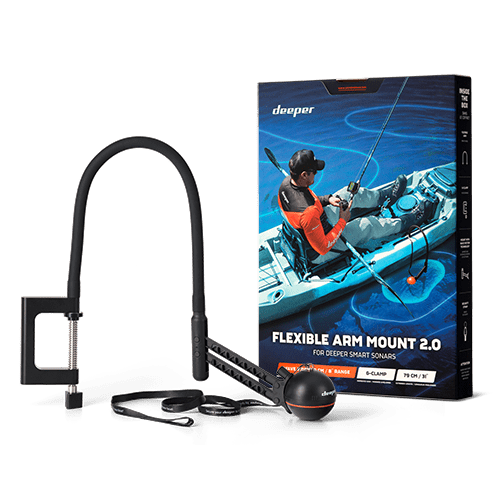 Monteer eenvoudigweg jouw Deeper Sonar (3.0, PRO of PRO+), klem de flexibele arm vast aan de boot en gebruik de sonar om ongelooflijke kaarten te creëren of om vis mee op te sporen.