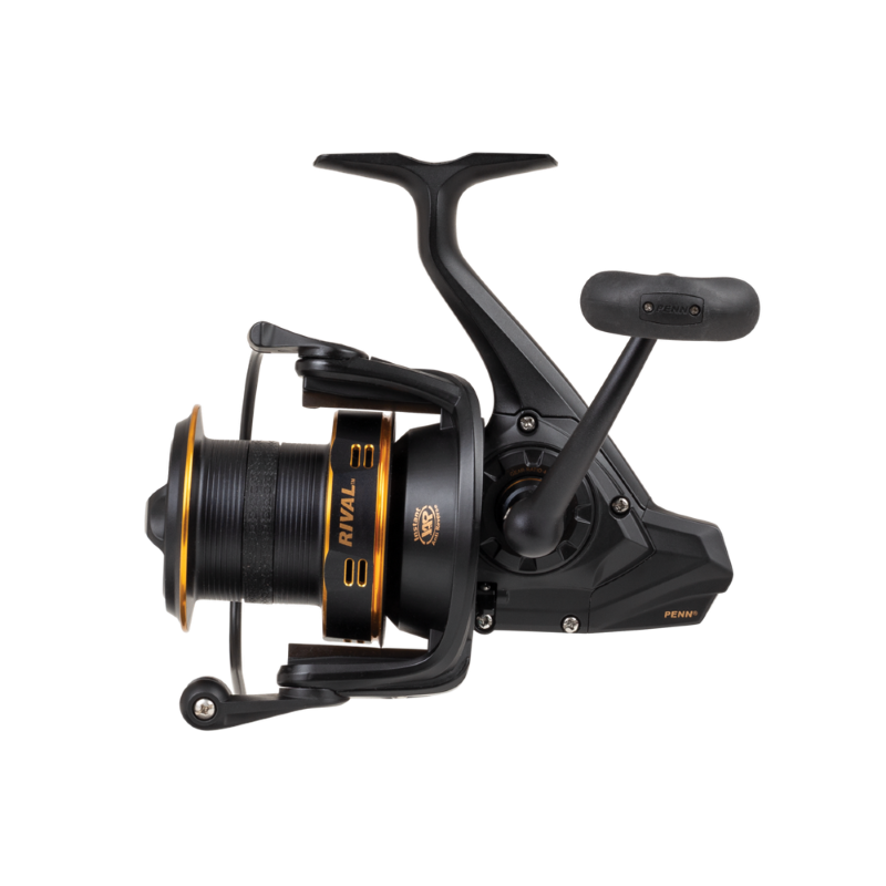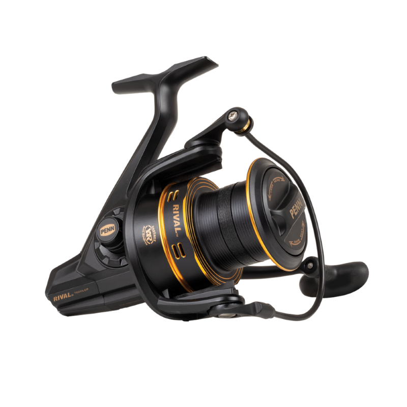 De Penn Rival Gold is ontwikkeld als een veelzijdige, allround, longcast werpmolen voor een aantrekkelijke prijs. Het systeem met 4 afgeschermde kogellagers, in combinatie met de direct werkende antiretourlager, verzekert je van een soepel draaien, zelfs onder druk. Het molenhuis uit grafiet, in combinatie met de gefreesde, voor gevlochten lijn voorbereide, aluminium spoel, resulteert in een sterke werpmolen met een laag eigen gewicht. De sterke en duurzame, neerklapbare slinger is uitgevoerd met een speciale T-vormige slingerknop voor extra grip en comfort.