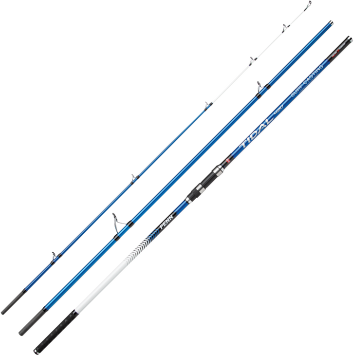 PENN Tidal is de nieuwe en exclusieve Surfcasting-serie in PENN. Tidal hengels staan ​​voor alles wat je nodig hebt voor surfcasting: supersterke maar lichtgewicht en responsieve 30T carbon blanks die zijn ontworpen om de beste afstandseigenschappen te hebben en alle hengels zijn gecombineerd met een Sensitip om zelfs de kleinste aanbeten te laten zien. Alle blanks zijn ontworpen met experts op het gebied van surfcasting in heel Europa, om u te verzekeren van de best mogelijke blanks – een ongelooflijke prijs-kwaliteitverhouding. De speciale K-type geleideogen zijn klitvrij en SW-proof om ervoor te zorgen dat je geen problemen krijgt met werpen, zelfs niet in winderige omstandigheden. Daarnaast worden alle hengels geleverd met een comfortabele krimpkous en een speciale werpgreep. Het assortiment bestaat uit vier unieke modellen die aan kleur te herkennen zijn, allemaal verschillend qua vermogen. De metallic zilveren PENN Tidal (50-200g) versie is gemaakt voor de lichtere visstijlen zoals b.v. strandvissen of vissen vanaf een pier waar geen zware uitrusting vereist is. De metallic groene (100-225g) versie en metallic blauwe (100-250g) versies zijn echte allround surfcasting hengels die onder alle omstandigheden gebruikt kunnen worden. Als afstand en kracht echter het belangrijkste zijn, is de metallic rode PENN Tidal (100-300g) versie de hengel die je nodig hebt om de klus te klaren.