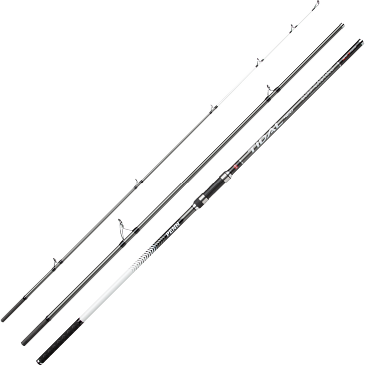 PENN Tidal is de nieuwe en exclusieve Surfcasting-serie in PENN. Tidal hengels staan ​​voor alles wat je nodig hebt voor surfcasting: supersterke maar lichtgewicht en responsieve 30T carbon blanks die zijn ontworpen om de beste afstandseigenschappen te hebben en alle hengels zijn gecombineerd met een Sensitip om zelfs de kleinste aanbeten te laten zien. Alle blanks zijn ontworpen met experts op het gebied van surfcasting in heel Europa, om u te verzekeren van de best mogelijke blanks – een ongelooflijke prijs-kwaliteitverhouding. De speciale K-type geleideogen zijn klitvrij en SW-proof om ervoor te zorgen dat je geen problemen krijgt met werpen, zelfs niet in winderige omstandigheden. Daarnaast worden alle hengels geleverd met een comfortabele krimpkous en een speciale werpgreep. Het assortiment bestaat uit vier unieke modellen die aan kleur te herkennen zijn, allemaal verschillend qua vermogen. De metallic zilveren PENN Tidal (50-200g) versie is gemaakt voor de lichtere visstijlen zoals b.v. strandvissen of vissen vanaf een pier waar geen zware uitrusting vereist is. De metallic groene (100-225g) versie en metallic blauwe (100-250g) versies zijn echte allround surfcasting hengels die onder alle omstandigheden gebruikt kunnen worden. Als afstand en kracht echter het belangrijkste zijn, is de metallic rode PENN Tidal (100-300g) versie de hengel die je nodig hebt om de klus te klaren.
