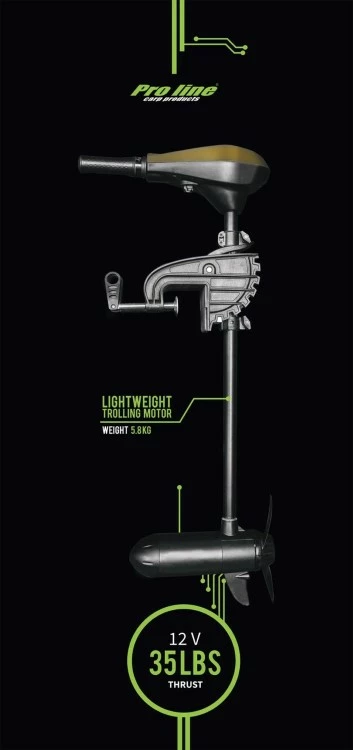 Nieuw van Pro Line, de Lightweight Trolling motor 35lb. Deze krachtige en toch stille motor heeft een korte staart en een stuwkracht van 35lb. Ruim voldoende voor iedere visserij. Gemakkelijk te bedienen vanuit de grotere boten.