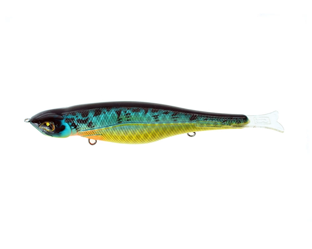 Een jerkbait die "glide"?……zeker! De Tracker glijdt netjes, is zeer langzaam te vissen waardoor je roofvis echt kan "triggeren" om toe te slaan. Deze drijvende jerkbait met ratel is heerlijk om te gooien. Niet te zwaar, niet te licht. De staart zorgt ervoor dat de Tracker zelfs bij de juiste tik weer van je af wil "zwemmen", kortom er worden halve cirkels gemaakt van links naar rechts. Vis de Tracker met een lichte leader en hij glide lang door, vis 'm met een zwaardere leader en de Tracker glijdt iets minder maar kantelt weer meer. Voorzien van 360RSHS bevestiging van de dreggen en een mooie "brede"buik die voor een goed silhouet vormt in het water. Snoek kan 'm niet weerstaan!