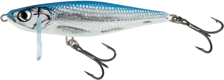 De Salmo Thrill is een unieke plug die speciaal is ontworpen voor het vissen op roofblei en is de ideale imitatie van een alver; de favoriete prooi van de roofblei. Dankzij het model, de hoge frequentie en de flitsende actie van deze plug is deze niet te onderscheiden van een levende vis. Het verhoogde gewicht en de unieke aerodynamica vergroten de werpafstand, zodat meer water kan worden bevist. De Thrill is ook zeer effectief in situaties waarin andere roofvissen azen op kleine prooivis.