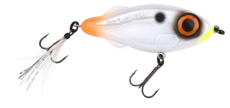 De Iris Flash Jerk is van het type glider en laat zich zeer eenvoudig vissen met zowel een lichte baitcaster als korte spinhengel. Vis de Flash Jerk met kleine rukjes van de hengeltop naar je toe en de jerkbait dartelt verleidelijk van links naar rechts onder het wateroppervlak. Laat de jerkbait stilvallen en deze zweeft enkele seconden alvorens langzaam af te zinken…dodelijk voor grote snoek! Naast de fraaie kleurencombinaties is de Iris Flash Jerk voorzien van een “tracking spot”, interne kogels voor meer ruis onder water en is de staartdreg voorzien van veren gecombineerd met holografisch tinsel materiaal voor maximale aantrekkingskracht. Standaard uitgerust met topkwaliteit splitringen en Gamakatsu NS Dreggen.